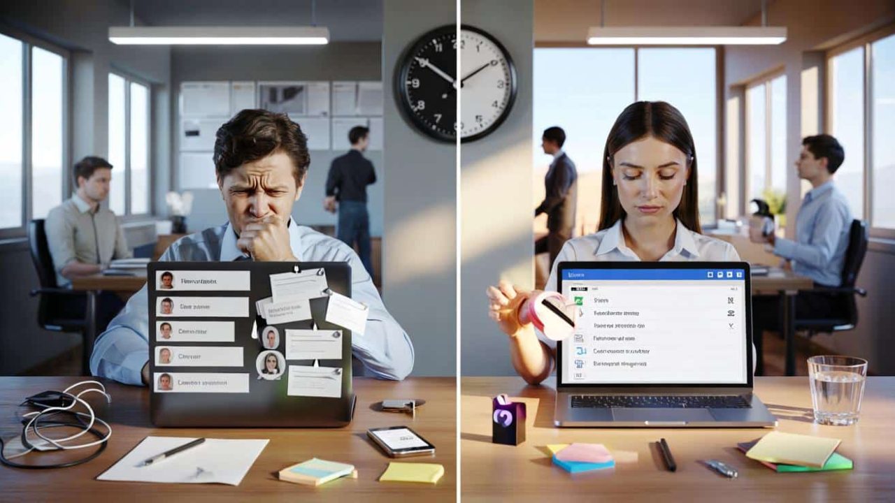 Kommen Ihnen solche Szenen bekannt vor? Tobias ist kein Einzelfall. In deutschen Büros verbringen Angestellte durchschnittlich 2,5 Stunden täglich mit E-Mails – Zeit, die oft ineffizient genutzt wird, weil die interne Kommunikation chaotisch abläuft.